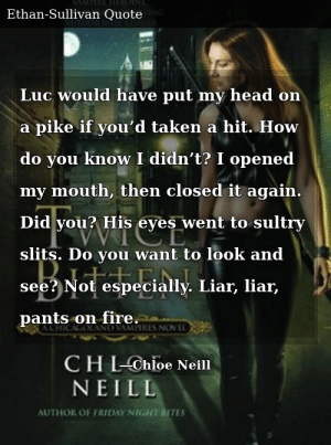 ![]() — Этан, это моя работа. Я должна защищать тебя, а не наоборот. Люк бы насадил мою голову на кол, если бы тебя ранили. — С чего ты взяла, что меня не ранили? Я открыла рот и снова закрыла. — Тебя ранили? Его глаза томно сощурились. — Хочешь посмотреть? — Не особенно. — Врунишка, врунишка, у тебя горят штанишки. © Мерит и Этан. Дважды укушенный |